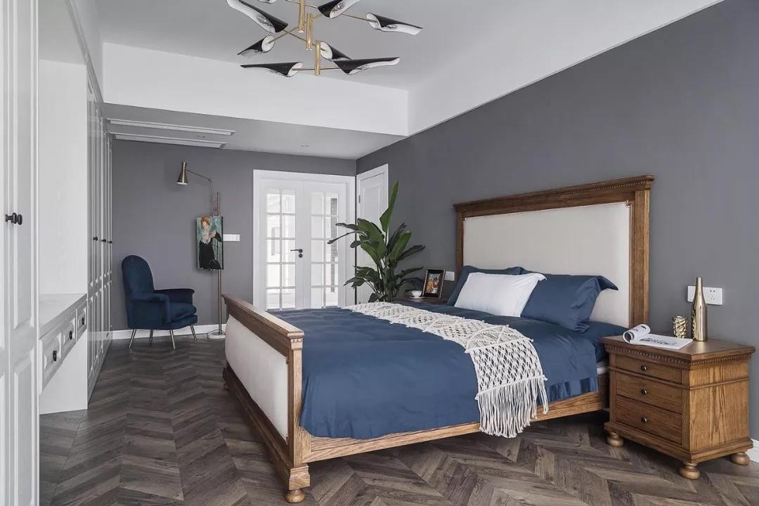 電視墻的設計也很有特色,在偏左的地方掛上一塊黑白相隔的毯子,在深灰色的電視墻上做了一個視覺沖擊的一個設計,讓電視墻看起來不單調,有個性。